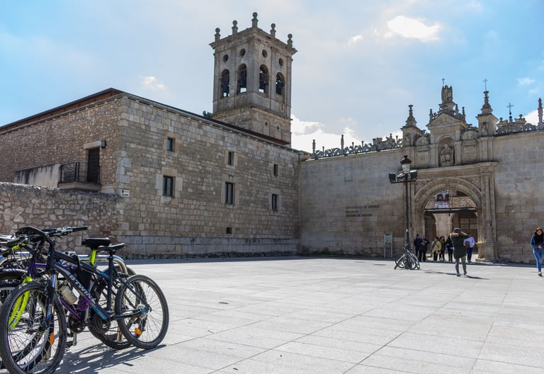 El Rectorado y la Facultad de Derecho de la Universidad de Burgos se ubican en el histórico Hospital del Rey, fundado en 1195 por Alfonso VIII como hospital de peregrinos en el Camino de Santiago. Este conjunto monumental, restaurado en el siglo XX, alberga actualmente dependencias universitarias en un entorno que fusiona patrimonio histórico y vida académica.