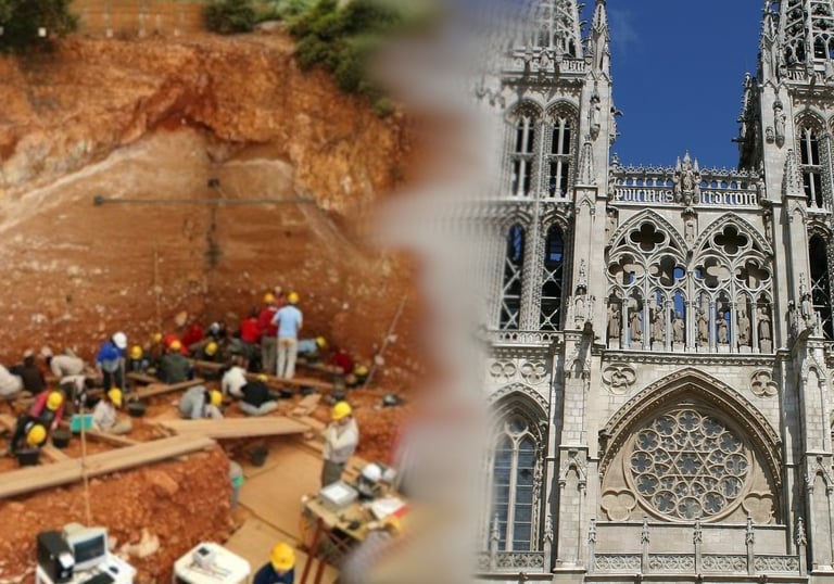 Situados a unos 15 km al este de Burgos, los yacimientos de Atapuerca adquirieron gran relevancia científica tras el descubrimiento en 1992 de la Sima de los Huesos y, en 1994, de restos humanos de más de 900.000 años que llevaron a identificar una nueva especie: el Homo antecessor. En el año 2000, la UNESCO declaró estos yacimientos Patrimonio de la Humanidad. Un año antes, en 1999, se creó la Fundación Atapuerca para apoyar y divulgar el proyecto, impulsada por sus tres codirectores: Juan Luis Arsuaga, José María Bermúdez de Castro y Eudald Carbonell..